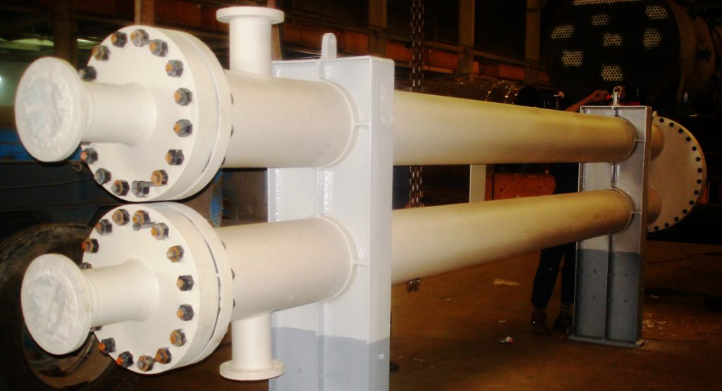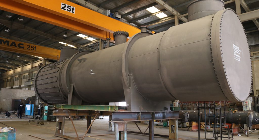 Fabrication facilities include CNC Drilling (for Tube Sheet Drilling), Orbital Welding Machine (for Tube to Tube Sheet Welding) & Microprocessor based Telescopic Expansion Machine ( for Tube to Tube Sheet Expansion) in addition to the regular machines like Plate Bending, TIG / ARC Welding, Grinding, Plasma Cutting etc. A full range of vertical and horizontally mounted heat exchangers is used in industries ranging from Chemical Plants and Paper Mills to Oil Refineries and offshore platforms. Customer’s specific thermal, mechanical and dimensional requirements are met with capacity of upto 400 bar g pressure and temperature of upto 1000ºC supplied with full certification as per TEMA(Class R,C,B) ASME Sec. VIII Div.1, BS, DIN Standards.